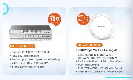 including GPON/XGSPON, 5G CPE, 5G MBB&FWA, switches, Wifi7 wireless