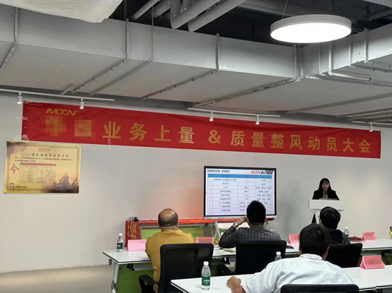 MTN has set up a special quality activity group headed by General Manager Mr. Huang, with quality and technical personnel as members, and has identified the topics of continuous product quality optimization, such as "standard three rate achievement, field present closure rate, PF (comprehensive straight-through rate), primary maintenance pass rate and 12H maintenance timely rate".